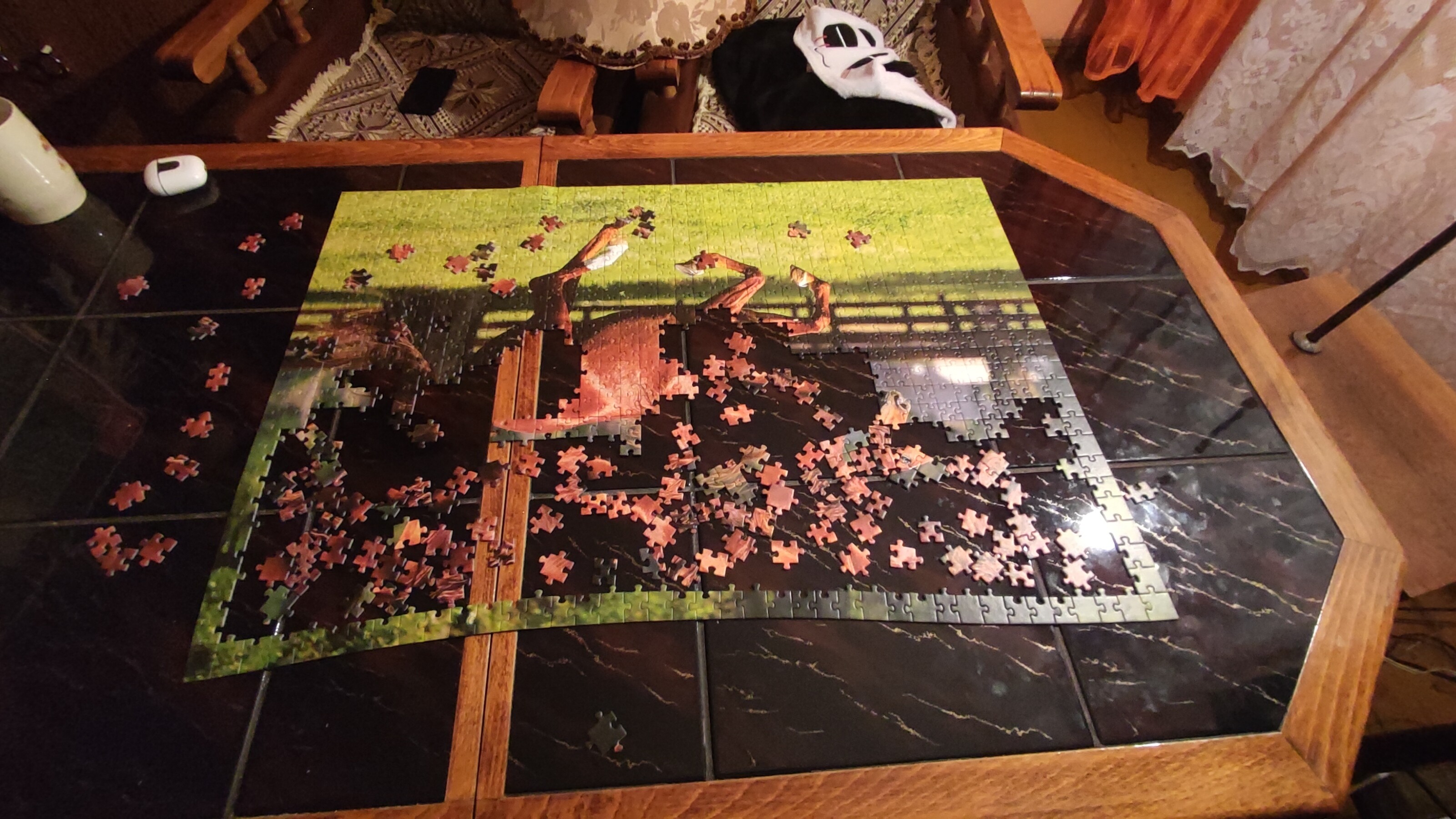 Puzzles depicting the image of a steed. Photo taken by the protagonist of the text