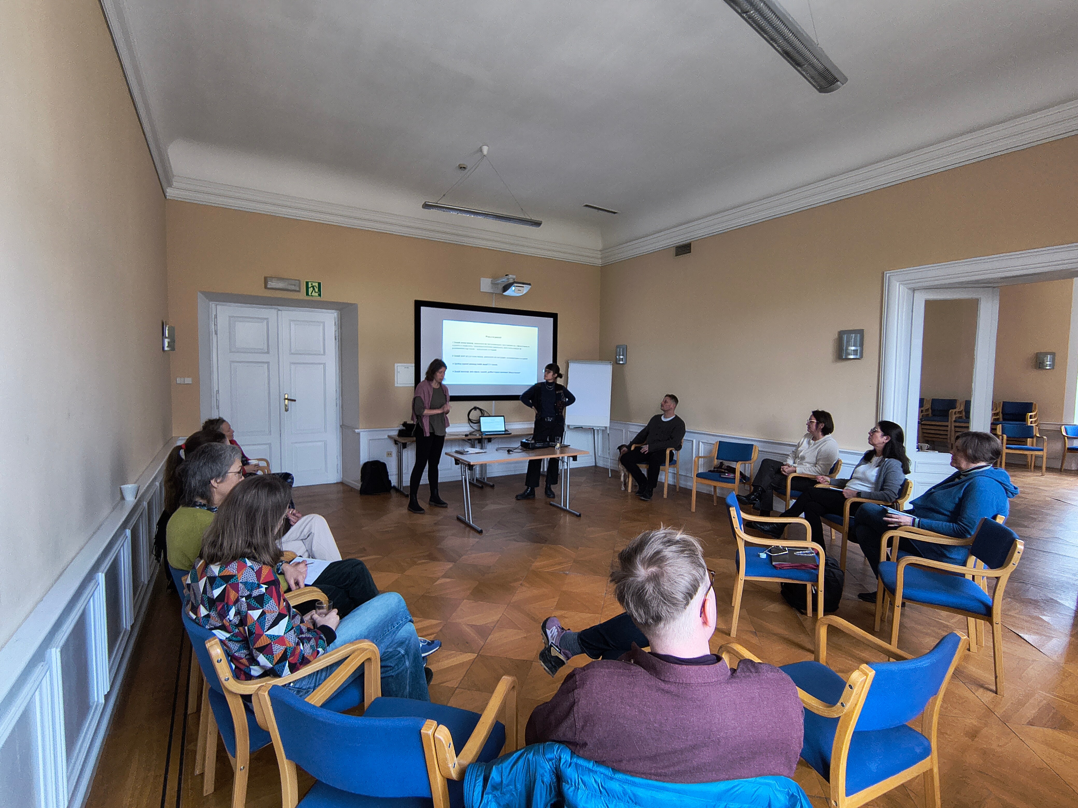Nasz zespół projektowy wziął udział w sympozjum naukowym Centrum Badań Migracyjnych UAM zorganizowanym w Fundacji „Krzyżowa dla Porozumienia Europejskiego” w Krzyżowej na Dolnym Śląsku w dniach 11-13 lutego 2026. W trakcie sympozjum dzieliliśmy się naszymi doświadczeniami z realizacji projektu, a Natalia Bloch i Zbigniew Szmyt przeprowadzili 3-godzinny warsztat „Migawki terenowe [flash ethnographies]” z pisania tekstów w tym promowanym przez nasz zespół na gruncie polskim gatunku. Warsztat spotkał się z bardzo dużym zainteresowaniem, a osoby w nim uczestniczące wypracowały pomysły na migawki z własnych terenów i obszarów badań. Poszukiwaliśmy wspólnie historii, tytułów i ilustracji naszych przyszłych flash ethnographies.